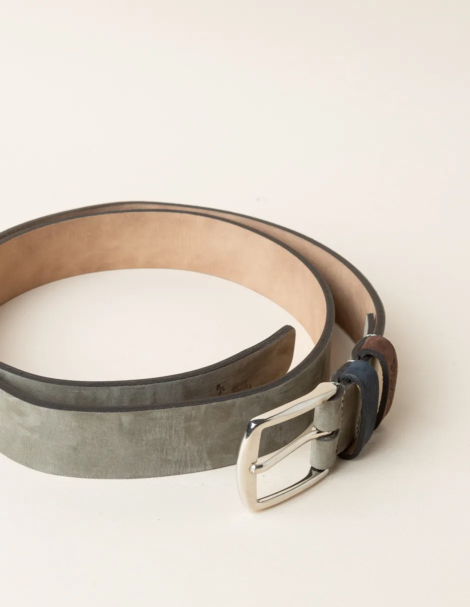 Cinturón de piel verde. Confeccionado en piel. Cierre con hebilla metálica. Trabilla personalizada. Logo grabado.